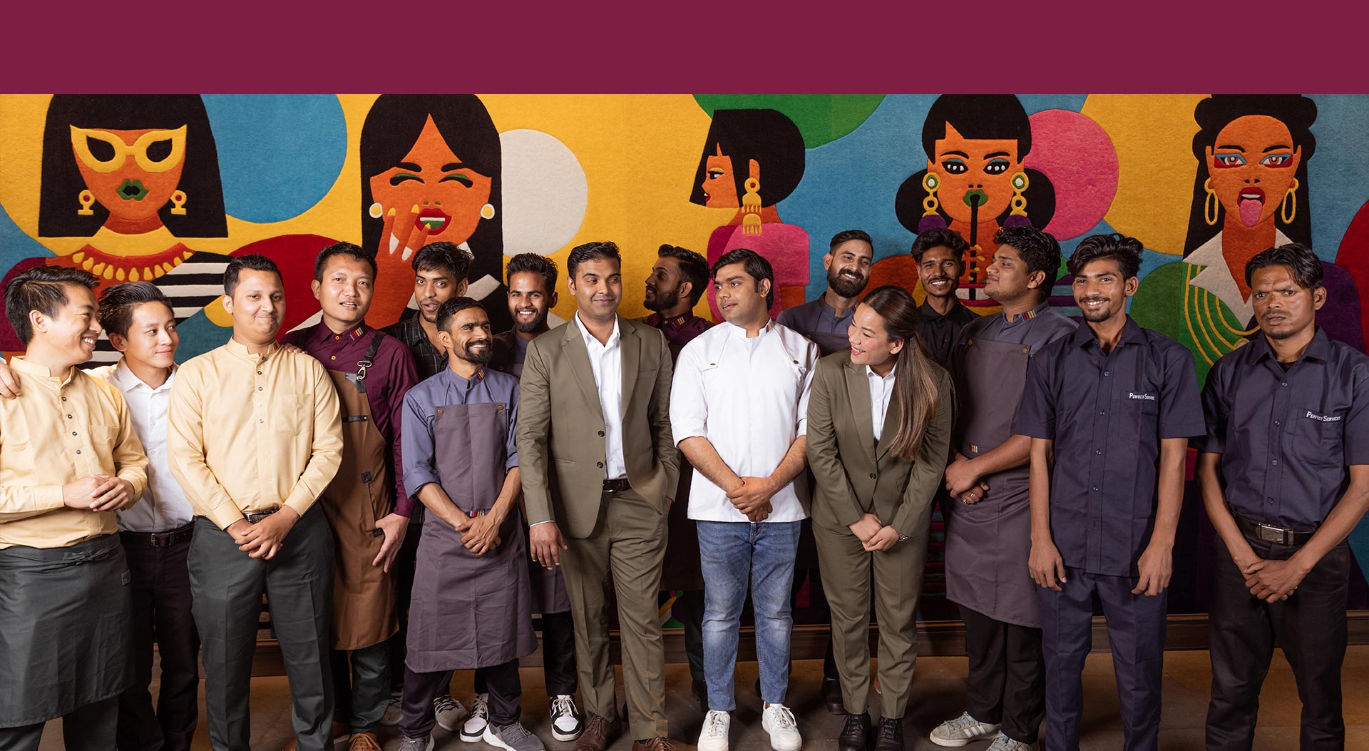 The KHI KHI Wall that greets guests upon entering forms the centerpiece of our main dining area. A contemporary graphic rendition by celebrated designer and Founder, Quirk Box Jayesh Sachdev, it depicts the urban Indian woman: spunky, owning it, and ready for her international magnanimity.